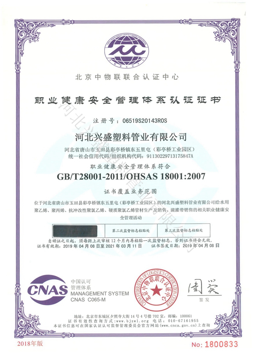 河北興盛塑料管業(yè)有限公司,始建于1981年,至今已有四十多年的發(fā)展歷程,致力于人畜飲水、節(jié)水灌溉等管道系列產(chǎn)品的研發(fā)、生產(chǎn)、銷(xiāo)售、設(shè)計(jì)安裝于一體的綜合型現(xiàn)代化企業(yè).....